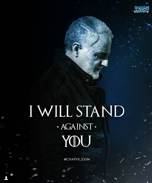 После угроз Трампа иранский генерал Касем Сулеймани опубликовал в Instagram также стилизованную под сериал фотографию с надписью "Я выстою".