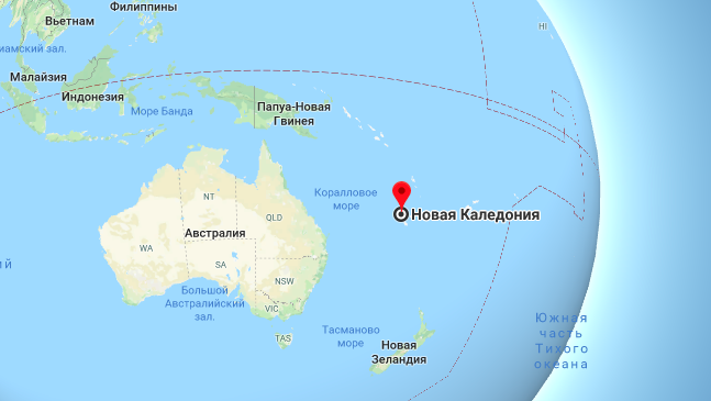 Новую Каледонию открыл Джеймс Кук в 1774 году. Она находится в 20 тысячах километрах от Парижа в Тихом океане. Его размер - 18 тысяч квадратных метров, то есть чуть больше половины от территории Крыма.