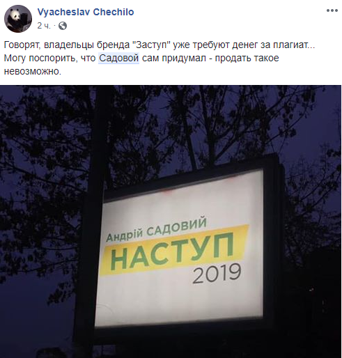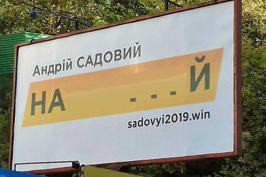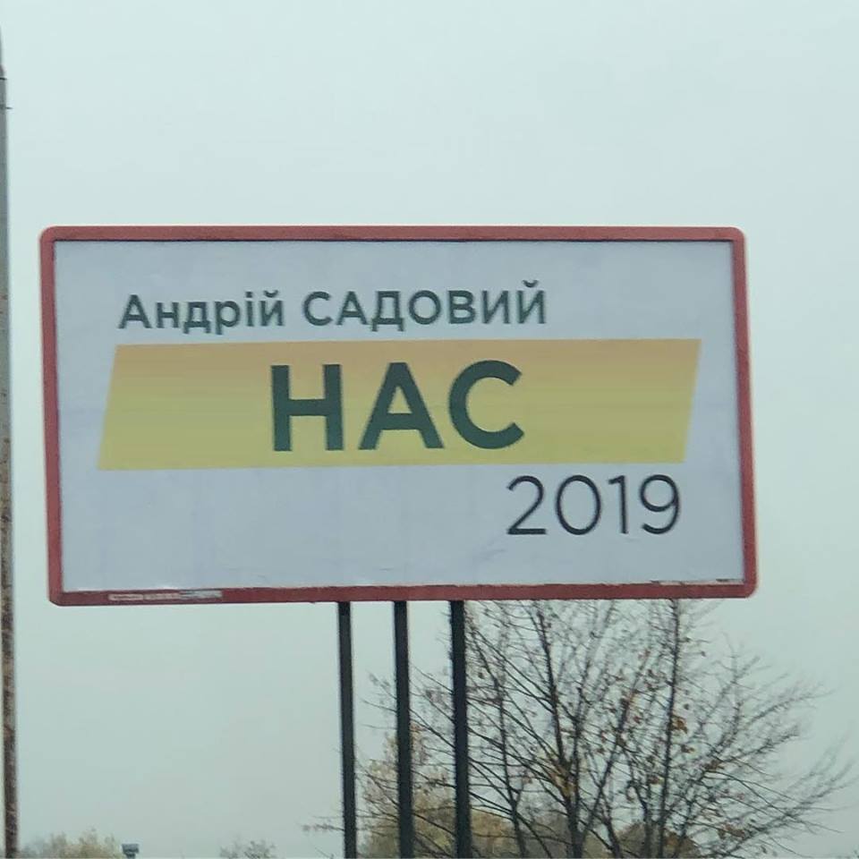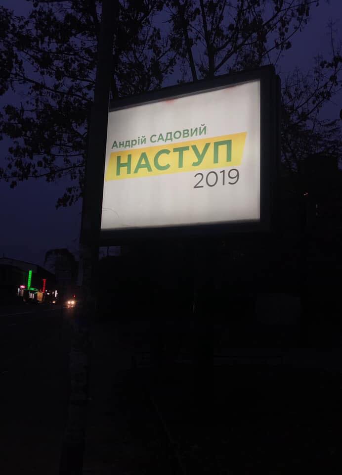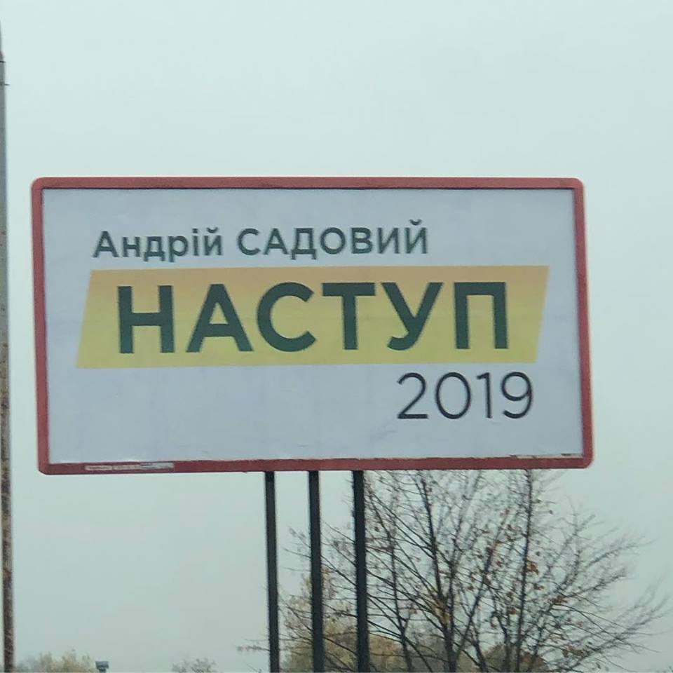 Как видим, видоизмененный "Наступний" удобен в использовании на ситилайтах: "Андрей Садовый. НАСТУП 2019". Всего три буквы убрали, а смысл уже другой.