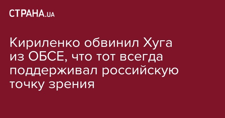 Вице-премьер-министр Украины Вячеслав Кириленко заявил, что экс-заместитель председателя Специальной мониторинговой миссии в Украине Александр Хуг все время на посту поддерживал российскую точку зрения о конфликте на Донбассе. Об этом он написал 5 ноября в Twitter.