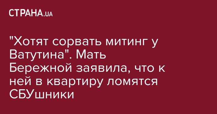 "Хотят сорвать митинг у Ватутина". Мать Бережной заявила, что к ней в квартиру ломятся СБУшники