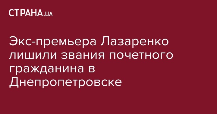 Инициатива лишения Лазаренко почетного звания исходит от ГО "Правый Сектор "Центр". Соответствующий проект решения городского совета Днепра был согласован на заседании комиссии горсовета по вопросам присвоения звания "почетный гражданин города".