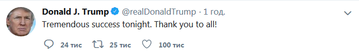 "Огромный успех сегодня. Спасибо всем вам!" - написал глава Белого дома.