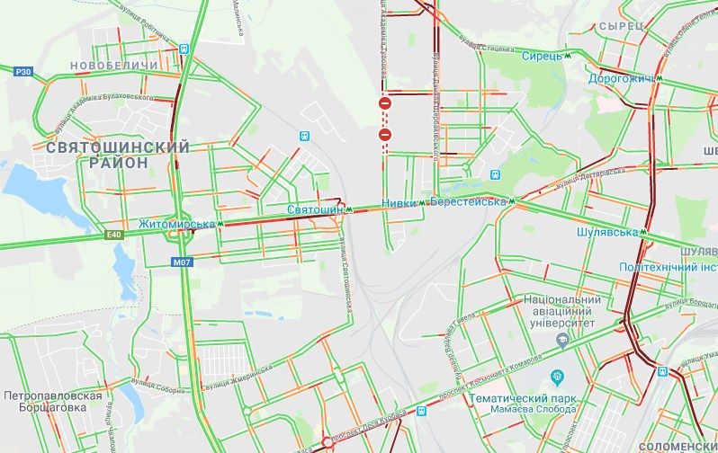 Так, с 09:00 утра наиболее загруженными из-за дорожных работ оказались районы станций метро "Арсенальная", "Левобережная", "Голосеевская" и "Дружбы народов". Кроме того, пробками по тем же причинам скованы Окружная дорога, проспект Леся Курбаса и улица Ромена Роллана.