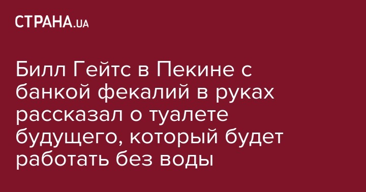Миллиардер и основатель Microsoft Билл Гейтс выступил в Пекине с презентацией экологического туалета, который не использует воду. В руках во время доклада он держал банку человеческих фекалий. Об этом сообщает ВВС.
