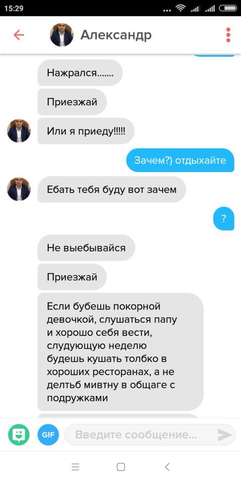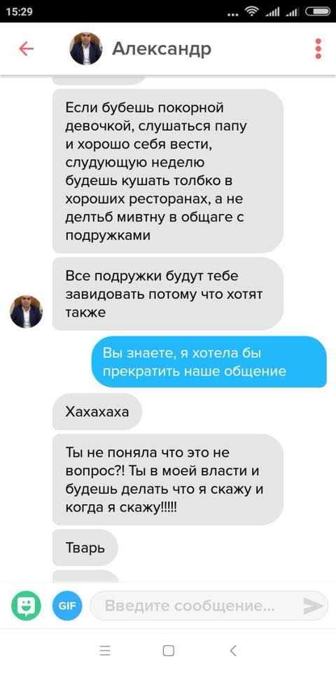 "Александр начал писать оскорбления и угрожать мне расправой, писать, что я его собственность, что я никто, что он может делать со мной все, что достанет меня везде. Всё бы это было похоже на угрозы в интернете от обиженного человека, но они не прекратились. Каким-то образом он узнал обо мне всё. Адреса меня и моих близких, номера телефонов, стал писать смс-ки и требовать контакта, угрожая физической расправой", - делится Бурейко.
