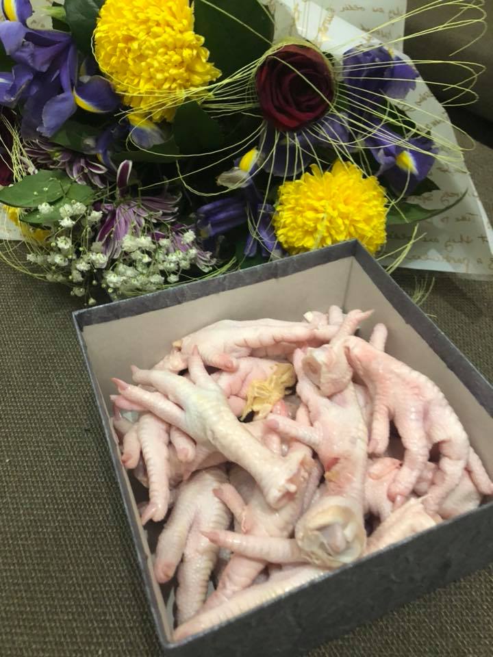 Бурейко приложила часть переписки, а также "подарок" в коробке из куринных ног.