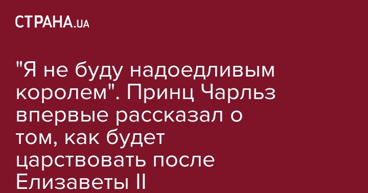 "Я осознаю, что быть монархом это отдельный ритуал и совершенно другая история", - заявил принц Чарльз. Он добавил, что понимает, как должен действовать. При этом он подчеркнул, что не будет "надоедливым королем". По мнению принца, монарх вынужден достойно играть ту роль, которую от него ожидают общество и подданые.