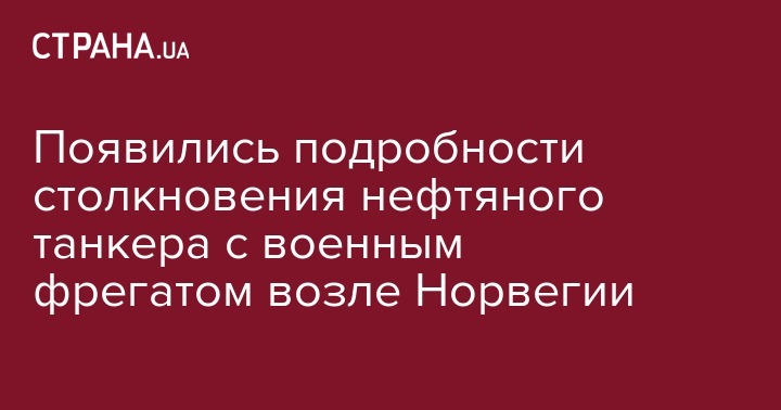 Стали известны подробности столкновения нефтяного танкера TS Sola с военным кораблем Helge Ingstad рядом с норвежским Бергеном. Военный фрегат, относящийся к типу "Фритьоф Нансен", поврежден и может затонуть. Все 137 человек экипажа эвакуированы, семеро получили легкие травмы.