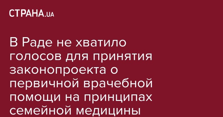В Раде не хватило голосов для принятия законопроекта о первичной врачебной помощи на принципах семейной медицины