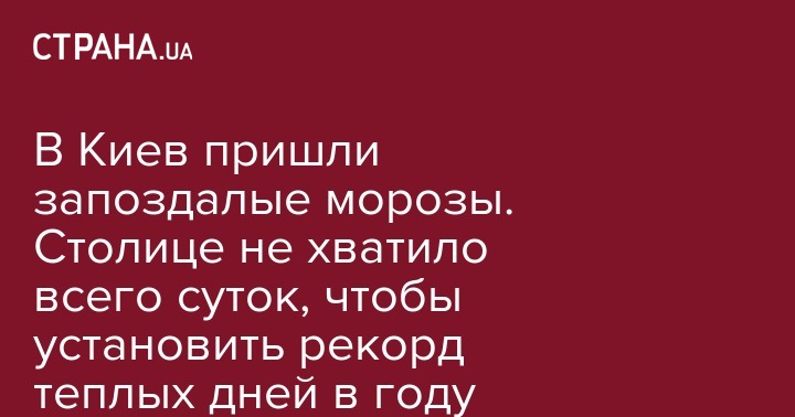 В 2018 году синоптики зафиксировали в столице Украины первые в нынешнем сезоне морозы 8 ноября. В этом году безморозный период длился 222 дня и таким образом рекорд остался непобитым. Но в любом случае морозы отсутствовали гораздо дольше, чем это предусмотрено климатической нормой (188 дней). Об этом сообщили в Центральной геофизической обсерватории имени Бориса Срезневского.