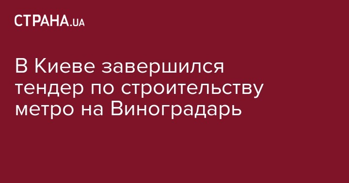 "В системе публичных закупок Prozorro завершился аукцион на строительство участка Сырецко-Печерской линии метрополитена от станции "Сырец" на жилой массив Виноградарь с электродепо в Подольском районе (участок от станции "Сырец" до станции "Проспект Правды" с двумя станциями ("Мостицкая" и "Проспект Правды") и участком вилочного ответвления в сторону станции "Виноградарь" (I очередь строительства))", - сообщается в четверг вечером на странице "Киевского метрополитена" в соцсети Facebook.