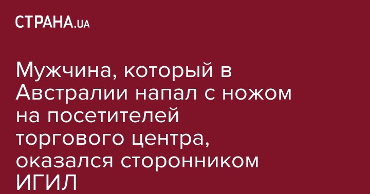 Мужчина, который в Австралии напал с ножом на посетителей торгового центра, оказался сторонником ИГИЛ