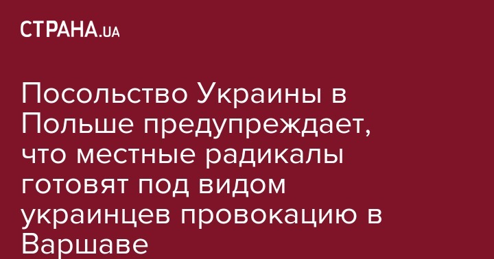 Посольство Украины в Польше предупреждает, что местные радикалы готовят под видом украинцев провокацию в Варшаве
