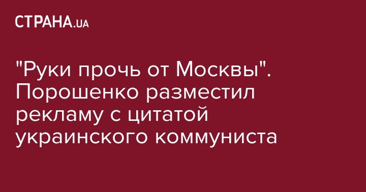 "На рекламных щитах размещен слоган "Геть від Москви". "Руки прочь от Москвы", - как бы говорят нам новые социальные борды Петра Порошенко", - пишет блогер Гороховский.