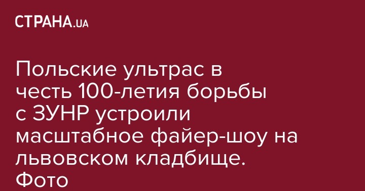 Во Львове 4 ноября на кладбище орлят польские футбольные фанаты с файерами и транспарантами отмечали 100-летие борьбы поляков против ЗУНР. Как пишет Zaxid.net, об акции на Лычаковском кладбище стало известно только 9 ноября, когда футбольные фаны опубликовали фото на своей Facebook-странице.