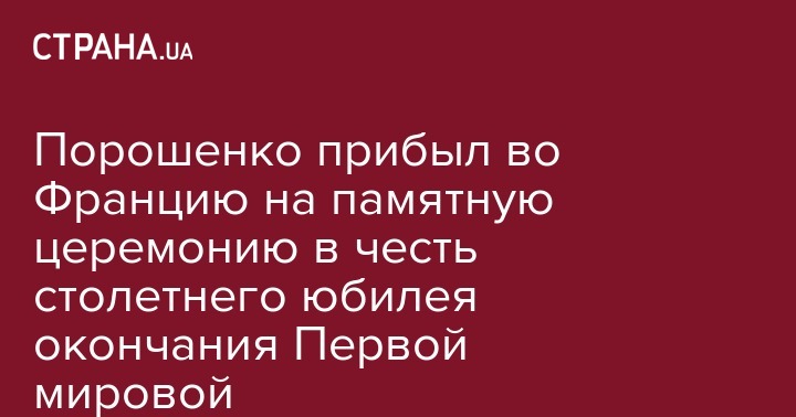 В субботу, 10 ноября, президент Украины Петр Порошенко прибыл с рабочим визитом во Францию. Во Франции глава государства примет участие в памятных и торжественных мероприятиях по случаю 100-летия завершения Первой мировой войны. Об этом сообщает "Укринформ".