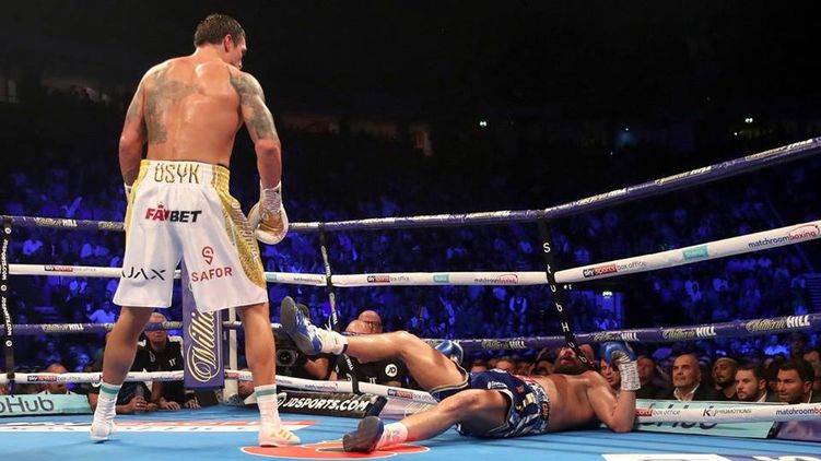 Александр Усик нокаутировал Тони Белью в 8-м раунде. Видео победного удара.