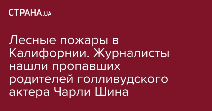 Лесные пожары в Калифорнии. Журналисты нашли пропавших родителей голливудского актера Чарли Шина