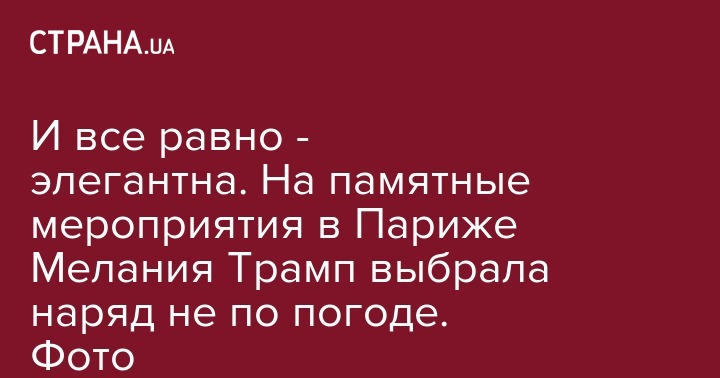 И все равно - элегантна. На памятные мероприятия в Париже Мелания Трамп выбрала наряд не по погоде. Фото