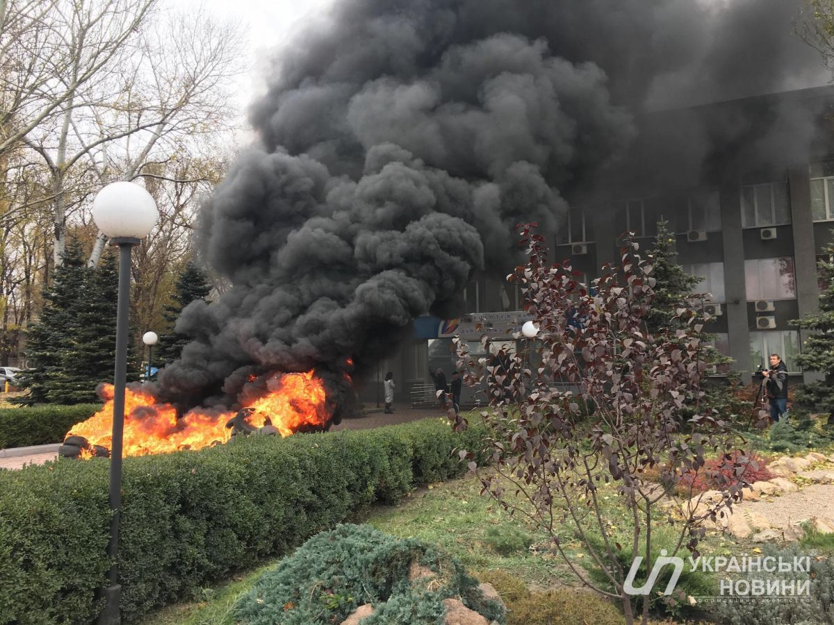Сегодня, 12 ноября, неизвестные подожгли шины под зданием ПАО "Криворожгаз" и ворвались в него. Толпа не дает потушить пожар прибывшей пожарной бригаде, пишут Украинские новости.