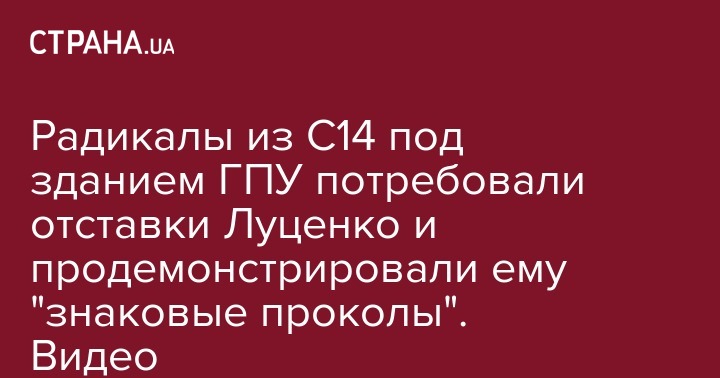 Радикалы из организации С14 в понедельник, 12 ноября, проводят у здания Генпрокуратуры в Киеве митинг и требуют отставки главы ГПУ Юрия Луценко. Об этом сообщает корреспондент "Страны".