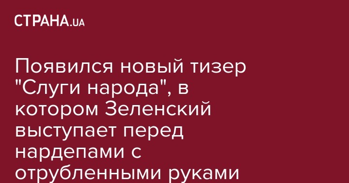 В сериале Владимир Зеленский в роли президента Украины с трибуны рассказывает депутатам о том, что они полностью побороли коррупцию, кнопкодавство и принцип "рука руку моет". Однако уже на следующем кадре становится понятно, что это стало возможным потому, что всем депутатам ампутировали обе руки.