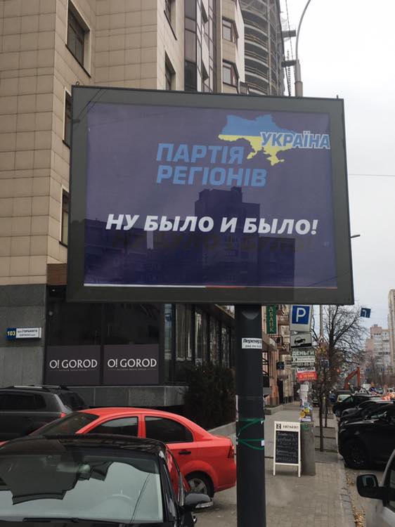 Жители столицы заметили несколько билбордов от имени Партии Регионов, которая с конца 2014 года не участвует в активной политической жизни страны.