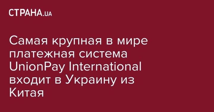 Самая крупная в мире платежная система UnionPay International входит в Украину из Китая