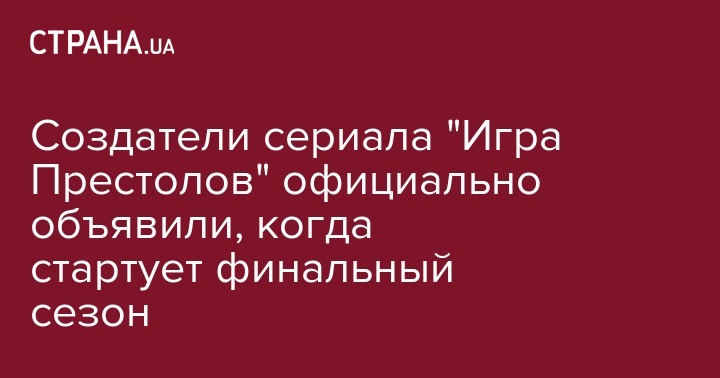 Мировая премьера заключительного сезона сериала "Игра престолов" состоится в апреле 2019 года.