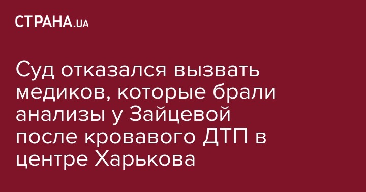 Райсуд Харькова, который рассматривает дело о ДТП на улице Сумской по обвинения Зайцевой и Дронов, рассмотрел результаты дополнительных экспертиз и принял ходатайство защиты одного из обвиняемых - водителя Volkswagen Дронова об отводе экспертов. Об этом Укринформу рассказали в суде.