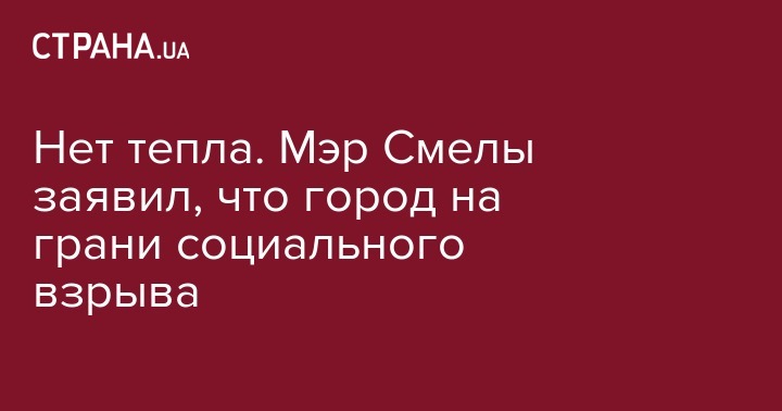 Мэр города Смелы Алексей Цыбко заявил, что жители находятся на грани социального взрыва из-за отсутствия теплоснабжения.
