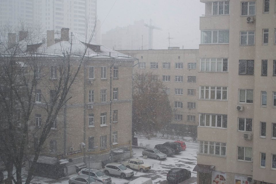 Пользователи соцсетей публикуют фото и видео первого снега в Киеве.