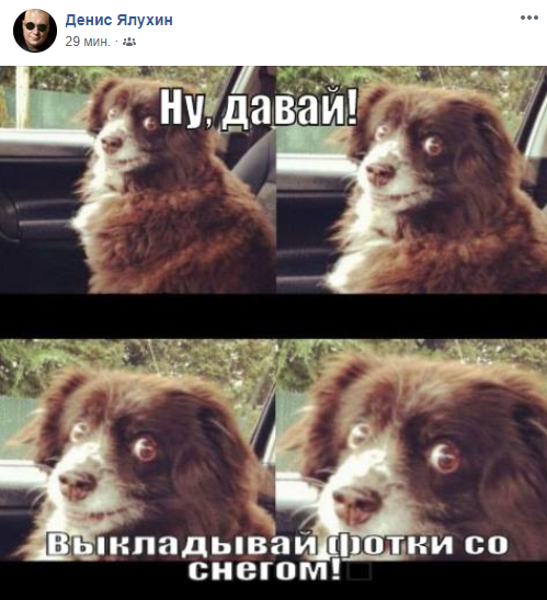 "Никак не пойму какая погода в Киеве?! Снег есть? Пробки на дорогах? Все зимнюю резину переобули? Ни слова в ленте об этом! Не пойму в чём дело".