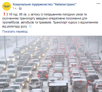 Из-за первого снега в Киеве общественный транспорт перешел на работу без графика