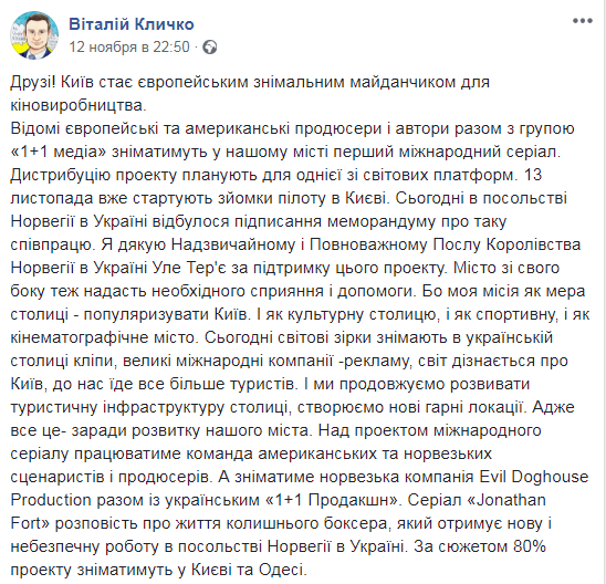 Об этом сообщил мэр Киева Виталий Кличко в Facebook. Дистрибуцию проекта планируют для одной из мировых платформ.