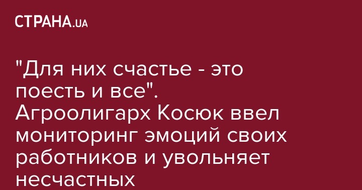 Глава правления агрохолдинга "Мироновский хлебопродукт", крупный олигарх и советник президента Украины Юрий Косюк после введения ответных санкций от России, рассказал, как эмоции сотрудников влияют на продуктивность работы и почему увольнению больше подвержены несчастливые специалисты, которые набирают лишний вес. Об этом сообщает "Интерфакс-Украина".