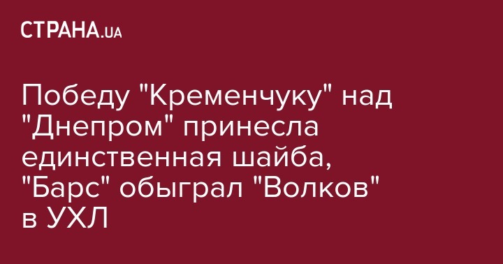 Победу "Кременчуку" над "Днепром" принесла единственная шайба, "Барс" обыграл "Волков" в УХЛ