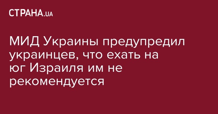 "В связи с обострением израильско-палестинского противостояния и массированными ракетно-минометными обстрелами южных территорий Израиля (г. Сдерот, г. Нетивот) Министерство иностранных дел Украины рекомендует гражданам Украины воздержаться на данном этапе от посещения указанных территорий и населенных пунктов", - сказано в нем.
