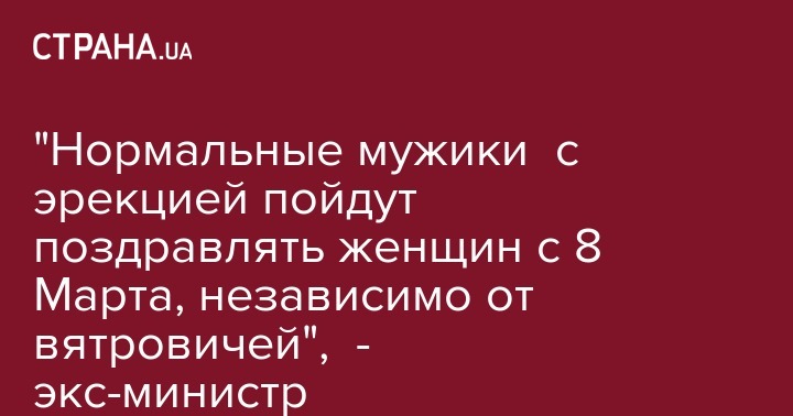 "Нормальные мужики с эрекцией пойдут поздравлять женщин с 8 Марта, независимо от вятровичей", - экс-министр