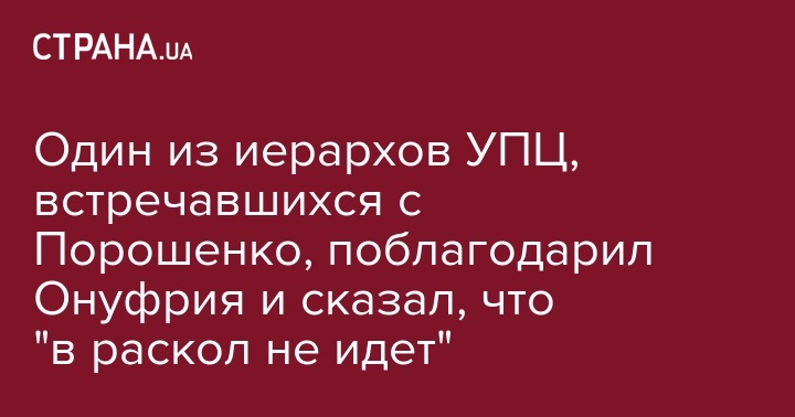 Один из иерархов УПЦ, встречавшихся с Порошенко, поблагодарил Онуфрия и сказал, что "в раскол не идет"