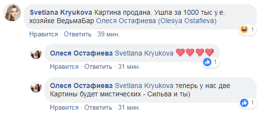 Картину приобрела хозяйка ВедьмаБар Олеся Остафиева (Olesya Ostafieva).
