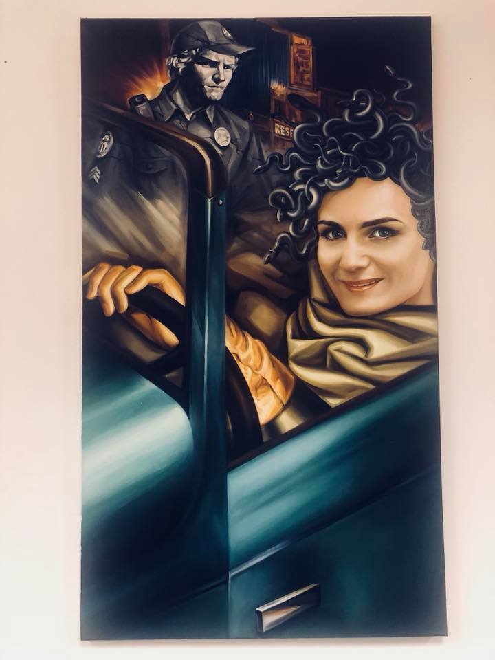 С виртуального молотка за $1000 ушло произведение искусства, на котором изображена сама Крюкова со змеями вместо волос (как у Медузы Горгоны) и патрульный полицейский. Сама Крюкова назвала его "олицетворением системы".