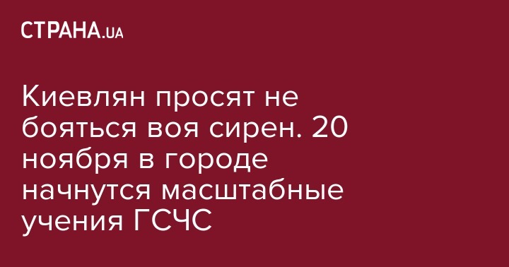 Отмечается, что 20 ноября учения будут проводиться с возможным запуском электросирен в Оболонском районе и 21 ноября - в Днепровском и Деснянском районах. Киевлянам не стоит паниковать. Также по городу будет передвигаться большое количество аварийной спасательной техники (к учениям будут привлечены более 50 единиц спецавто).
