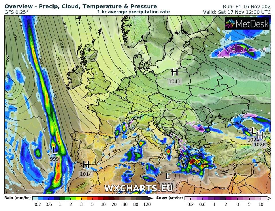А вот в течение 20, 21 и 22 ноября в результате перемещения циклона с районов Средиземноморья погода в Украине усложнится. "Пройдут осадки, сначала мокрый снег и дождь, потом через потепление лишь дождь. Осадки и ветер могут быть сильными", - сообщает специалист. "Поэтому завтра-послезавтра, относительно комфортными выходными, подышите свежим воздухом, хорошо отдохните, чтобы в середине недели, ища спазмалгон или что-то подобное, с платком на голове, было что-то приятное вспоминать. Потому что говорят, что хорошие мысли способны даже физически лечить", - советует Диденко.