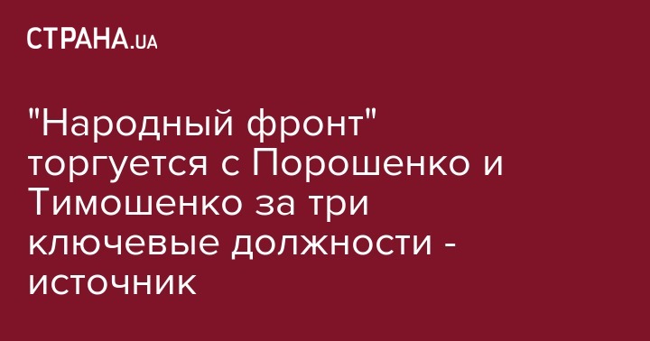 "Народный фронт" торгуется с Порошенко и Тимошенко за три ключевые должности - источник