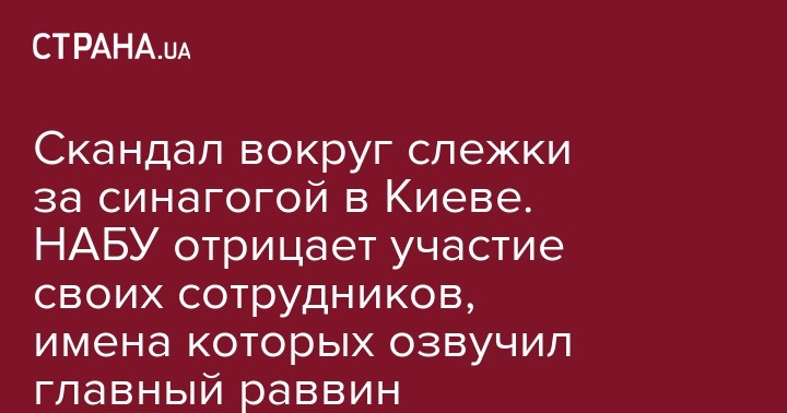 После заявлений главного раввина Украины о том, что, по результатам внутреннего расследования и изучения видео, выяснилось, что за синагогой в Киеве с вероятностью 99.97% следили сотрудники НАБУ Ярослав Корбан и Ирина Дончишина, в Национальном антикоррупционном бюро еще раз открестились от слежки. Об этом со ссылкой на пресс-службу НАБУ пишет "Интерфакс"