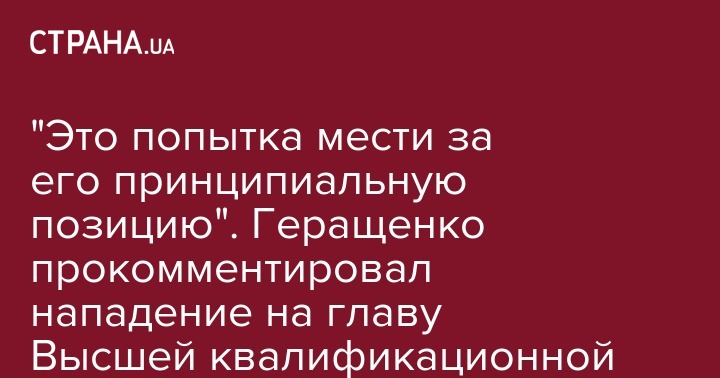 "Это попытка мести за его принципиальную позицию". Геращенко прокомментировал нападение на главу Высшей квалификационной комиссии