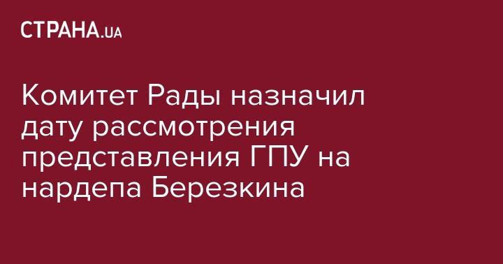 "19 ноября состоится открытое заседание комитета, на котором запланировано рассмотреть представление "О даче согласия на привлечение к уголовной ответственности народного депутата Украины Станислава Семеновича Березкина", "О предоставлении согласия на задержание народного депутата Украины Станислава Семеновича Березкина", "О даче согласия на избрание в отношении народного депутата Украины Станислава Семеновича Березкина меры пресечения в виде содержания под стражей (ареста)" от 6 ноября 2018 года, поддержанных и внесенных 7 ноября 2018 года в Верховную Раду Украины генеральным прокурором Украины Луценко Ю.В. Для участия в заседании комитета приглашены генеральный прокурор Украины Луценко Ю.В. и народный депутат Украины Березкин С.С", - говорится в сообщении.