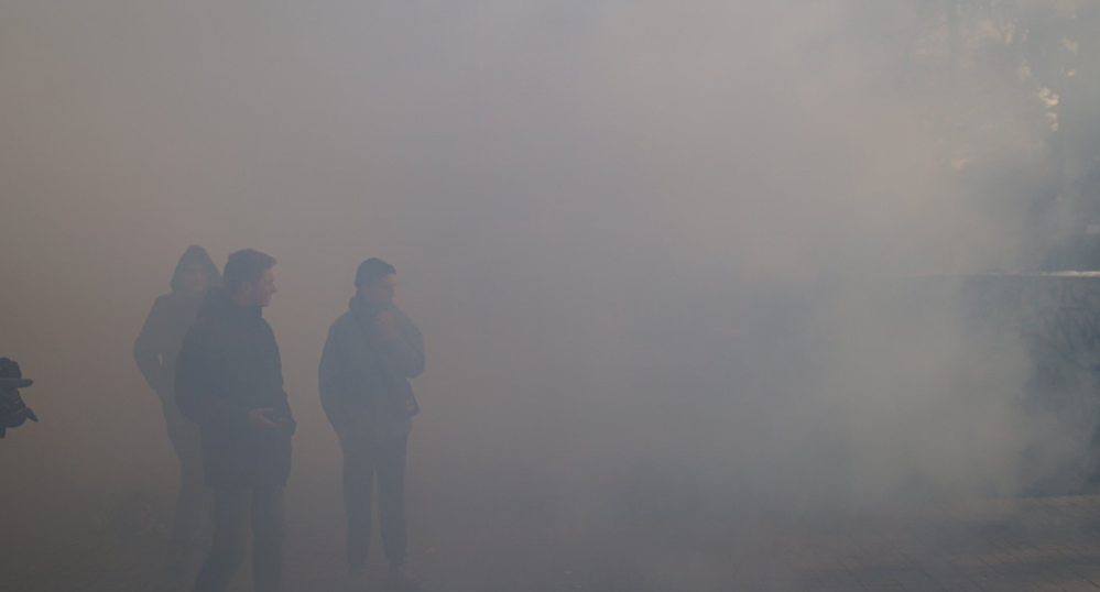 Противники марша начали бросать дымовые шашки, в том числе на дорогу, распылять газовые баллончики. А также скандировать "Слава нации — смерть врагам!" и "Украина превыше всего!"